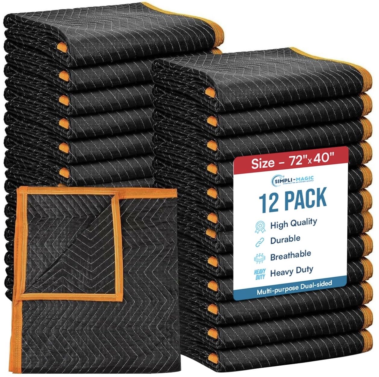 Simpli-Magic Heavy Duty Padded Moving Blankets 72" x 40" – 12 Pack – Packing Blankets, Furniture Covers for Moving