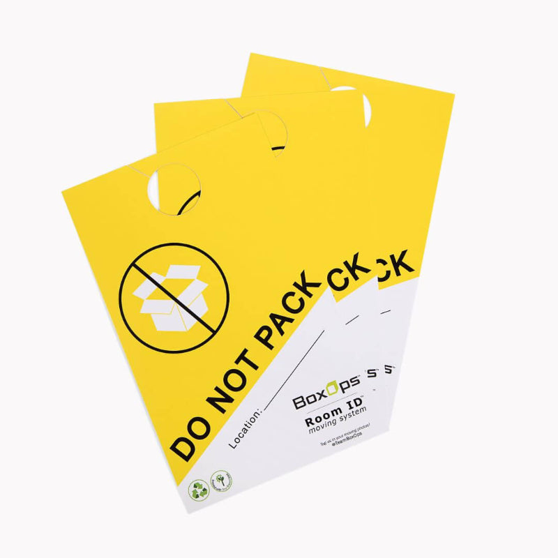 3. Hang the DO NOT PACK Door Hanger on the room’s entry or attach it with painter’s tape for clear visibility.