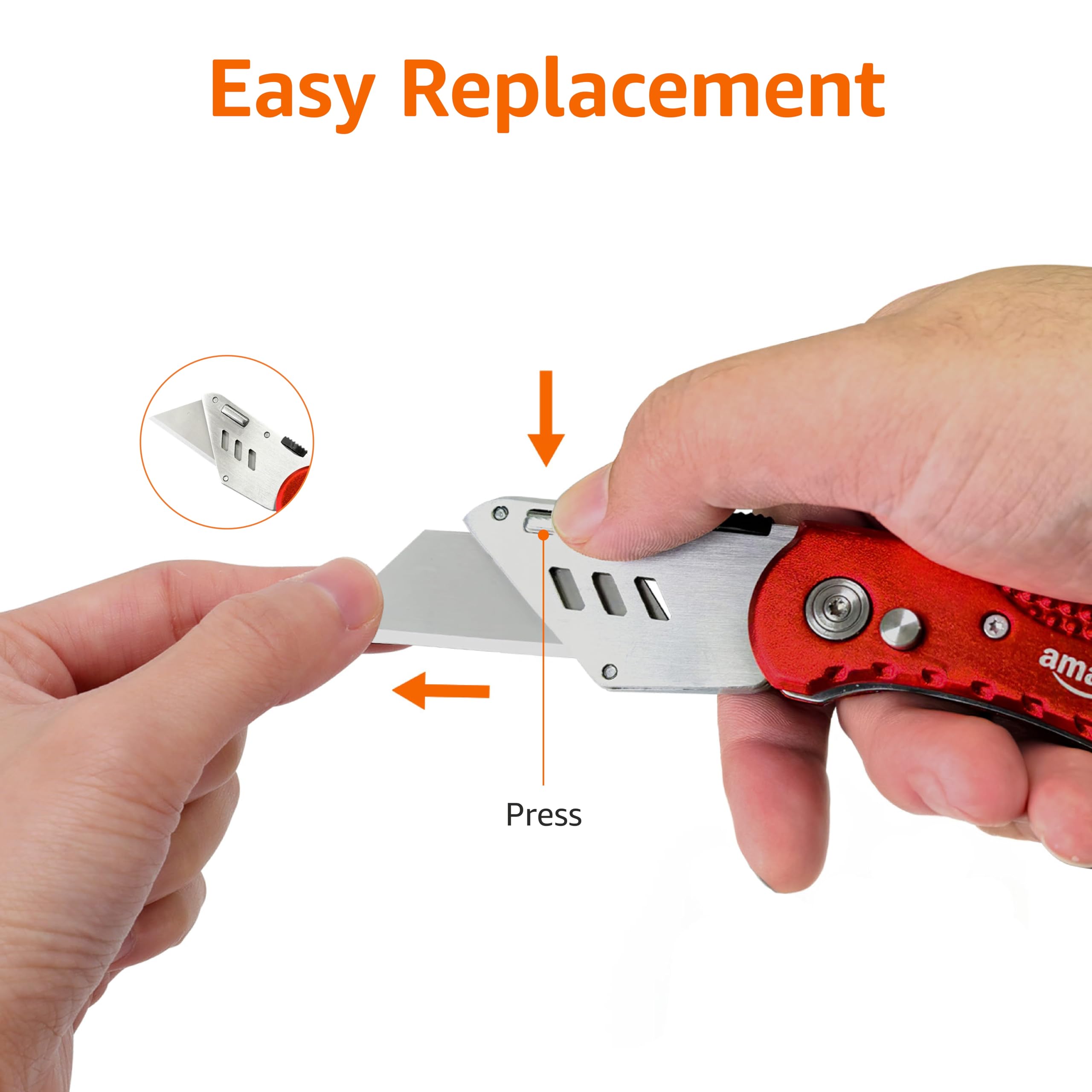 Amazon Basics Folding Utility Knife - Lightweight Aluminum Body