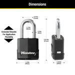 • 1-7/8 in. (48 mm) wide lock body; 5/16 in. (8 mm) diameter shackle with 1-1/2 in. (38 mm) length, 13/16 in. (21 mm) width; Extended shackle for application flexibility
