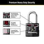 • 4-Pin cylinder and dual ball bearing locking for increased pick and pry resistance; Covered keyway and shackle for added weather protection