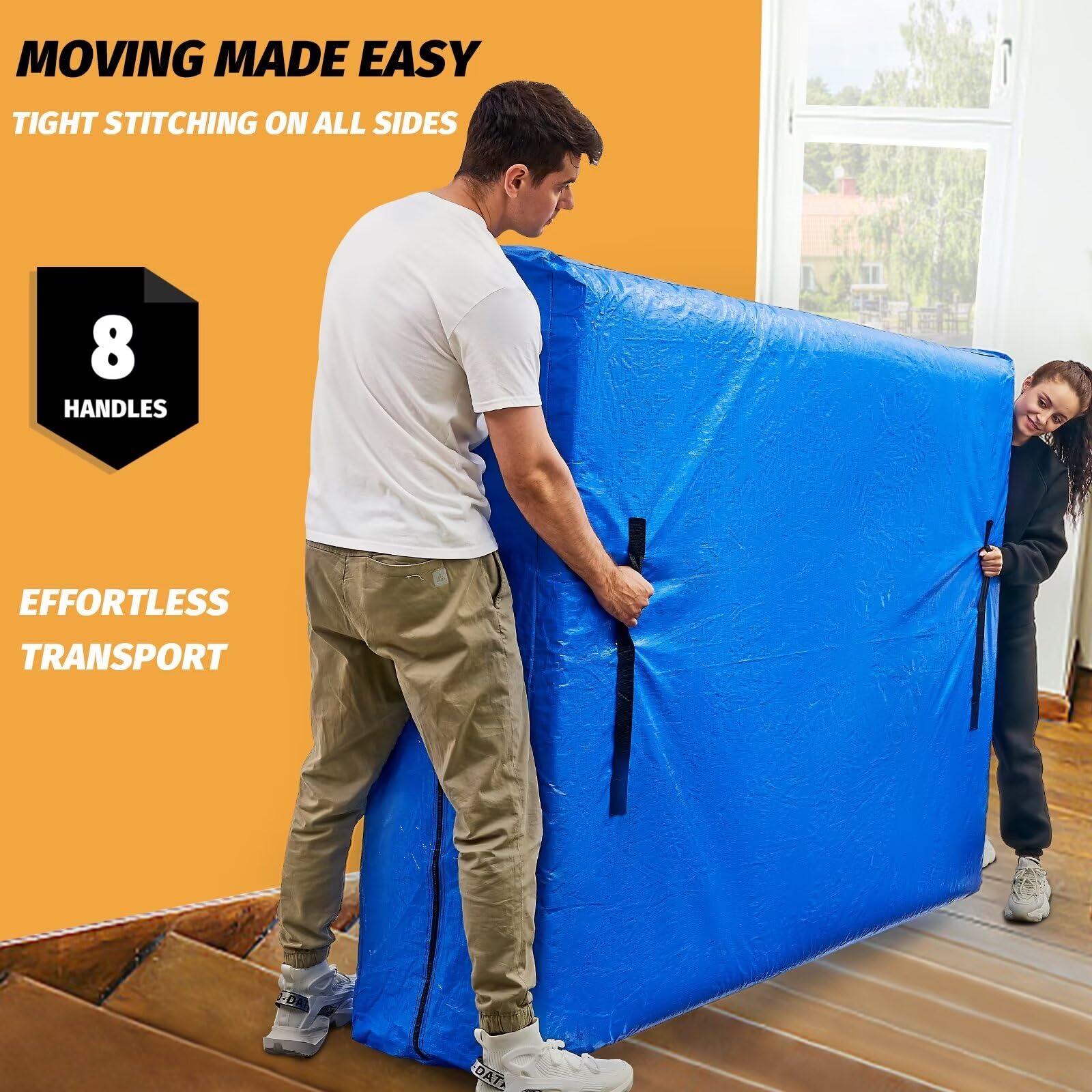 • 8 Extra-Large Handles & 2 Zippers Design - Our mattress protector bags have 8 sturdy handles, making it easy to carry your heavy mattress. Additionally, the 3/4 extra-large double Zipper design makes it convenient to remove and reinstall. Even the smallest moving vehicles can fit it easily. Our mattress bags are especially suitable for mattresses that need long-term storage.